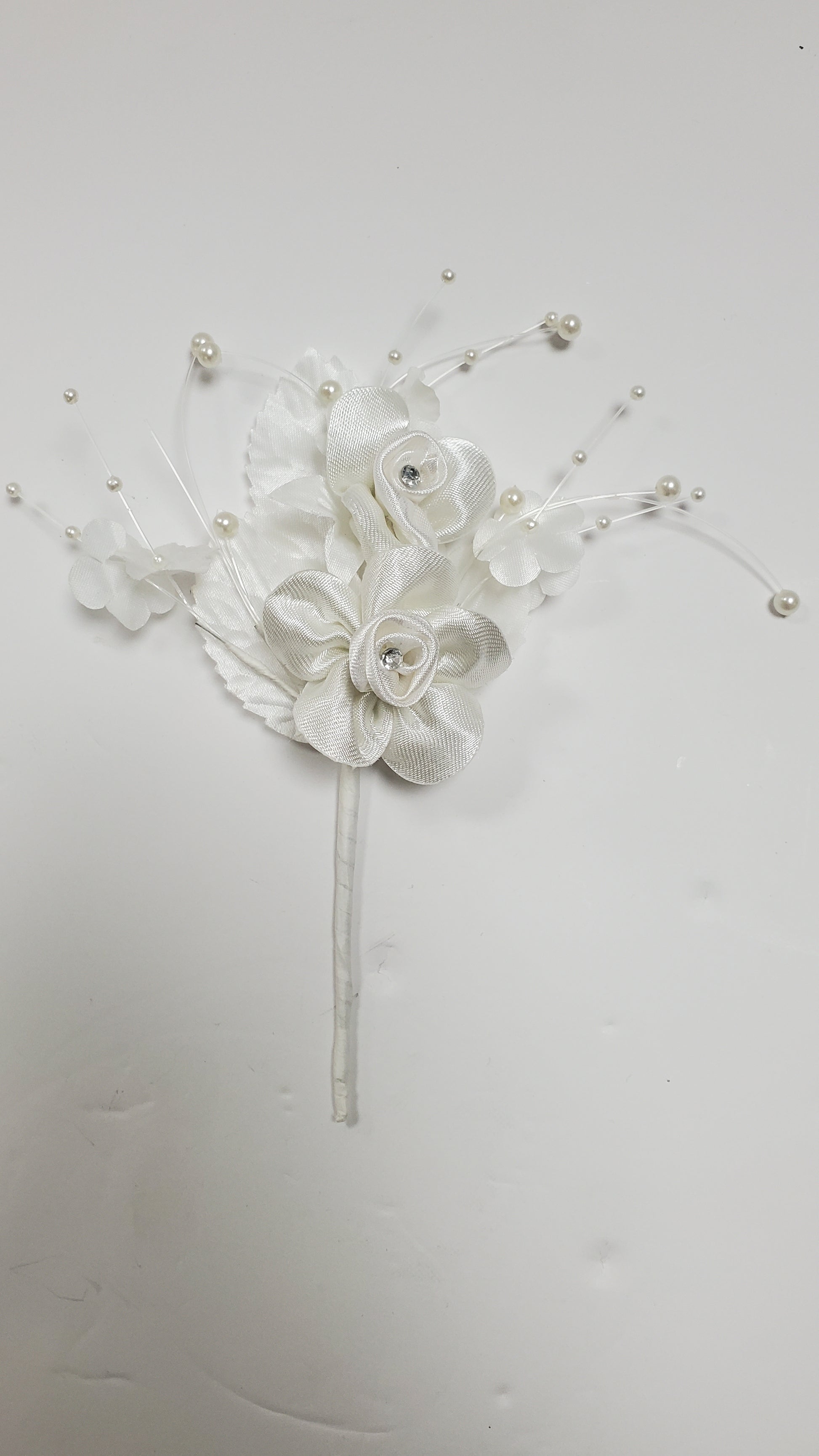 White Flower Bouquet w. streaming pearls- 12pcs/bag ARF2083W