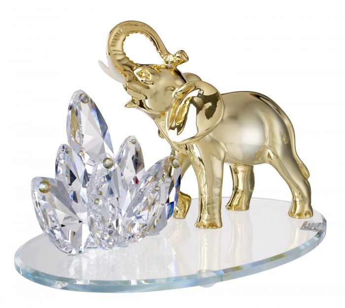 Elephant Figurine w. 925 Gold Argento Swarovski Crystal Clusters In 18kt Gold Plated Finish #DC2025G