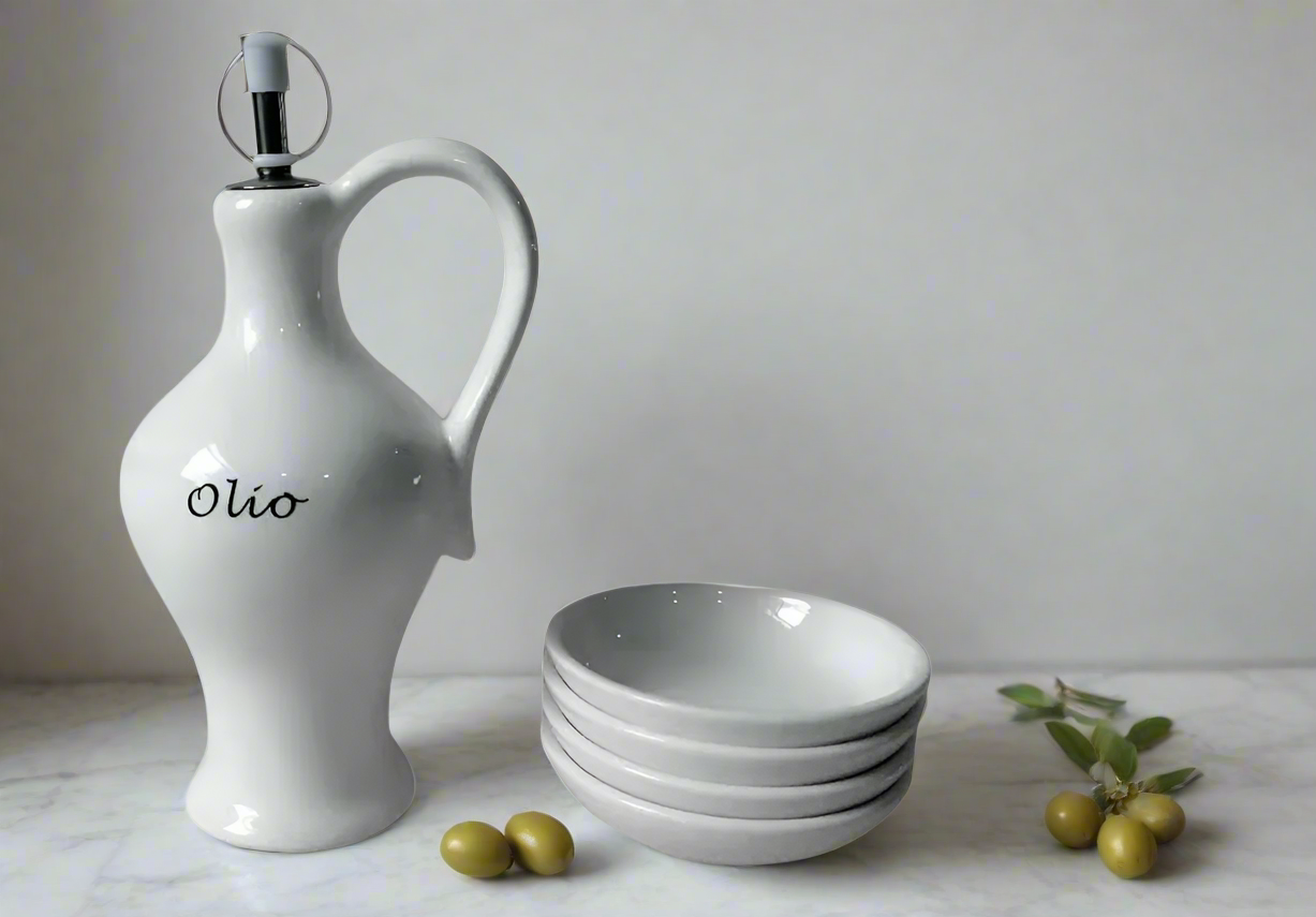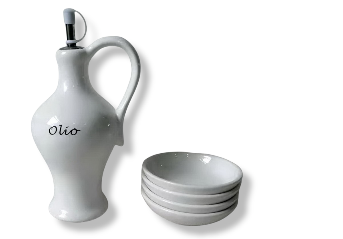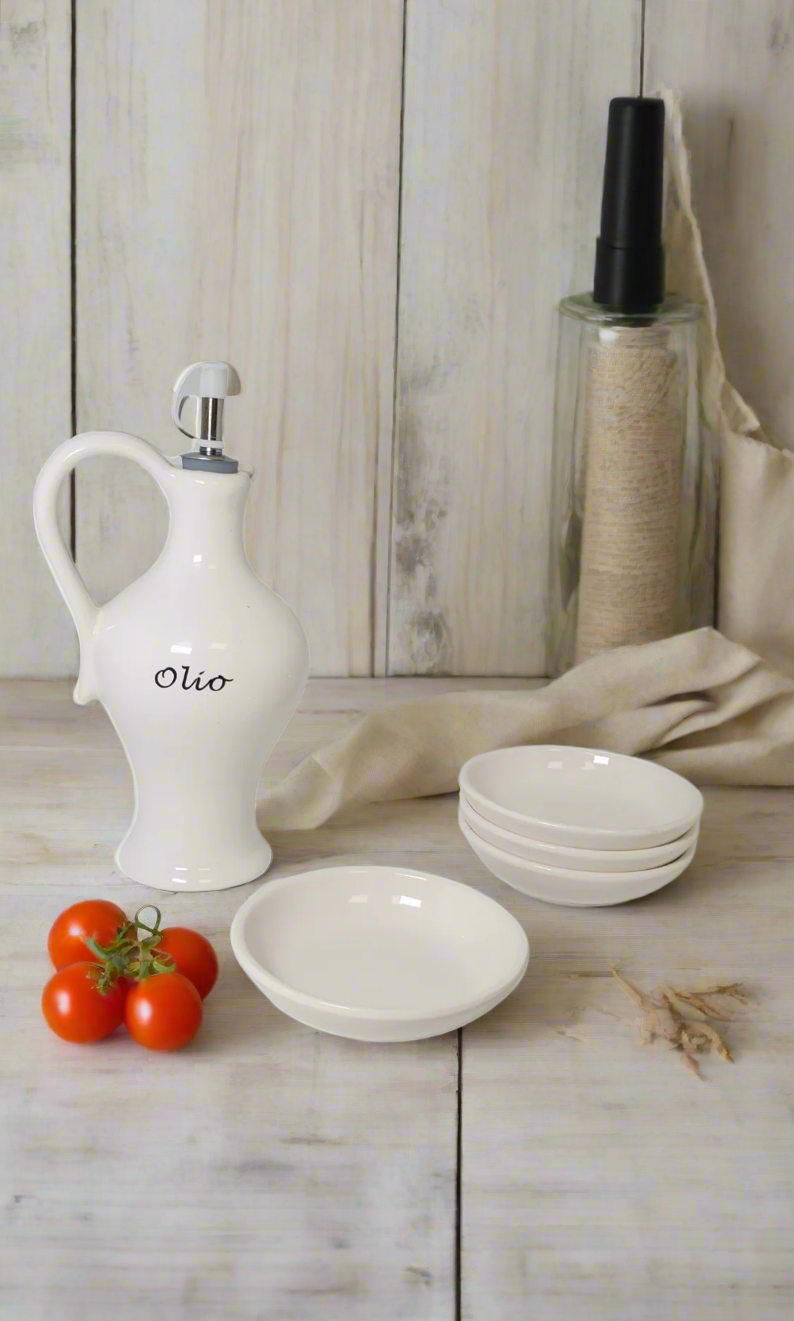 Disponible nuevamente en agosto de 2023 Cucina Italiana Dispensador de aceite de oliva de cerámica Cruet con 4 platos de inmersión #0179/W