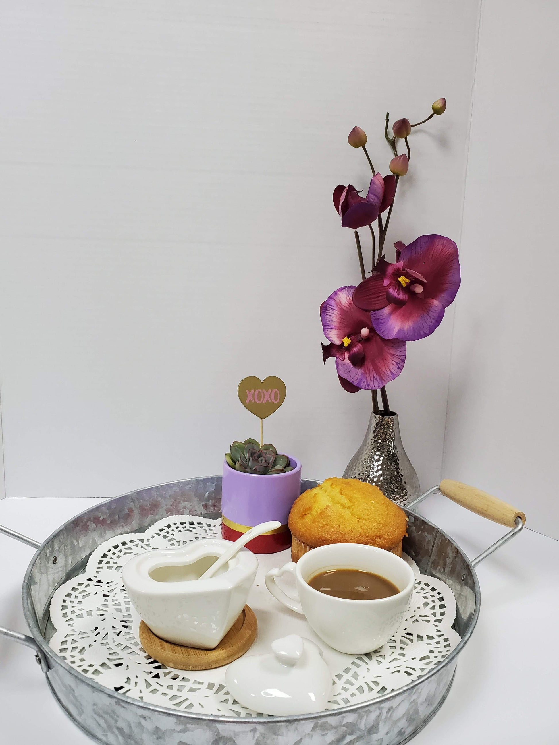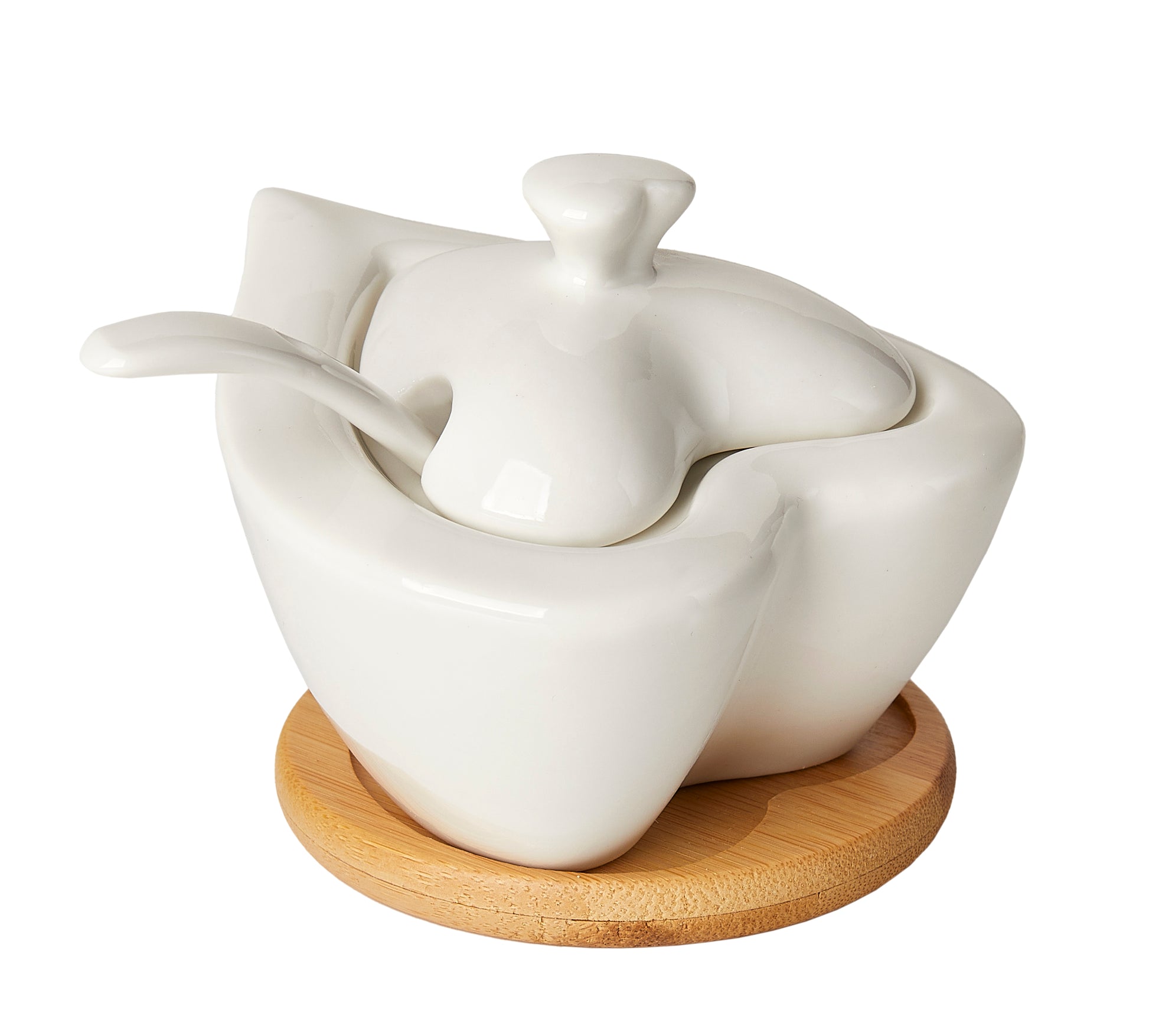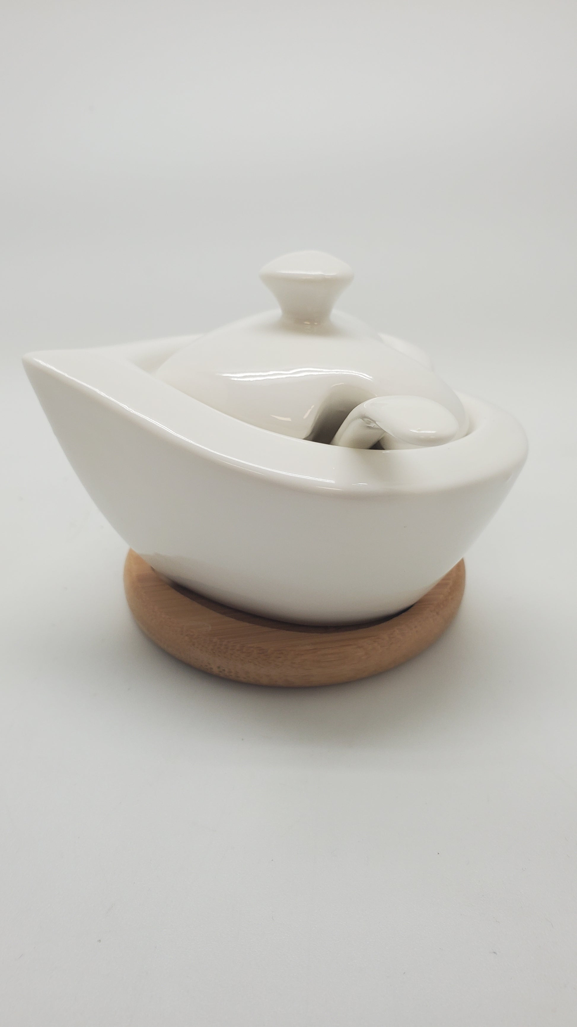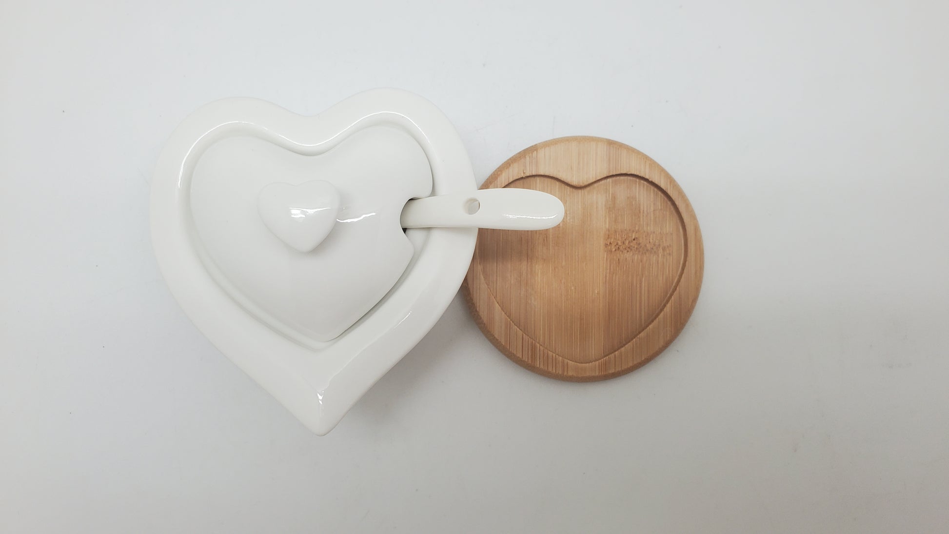 Debora Carlucci Azucarero en forma de corazón blanco sobre base de madera #DC4560