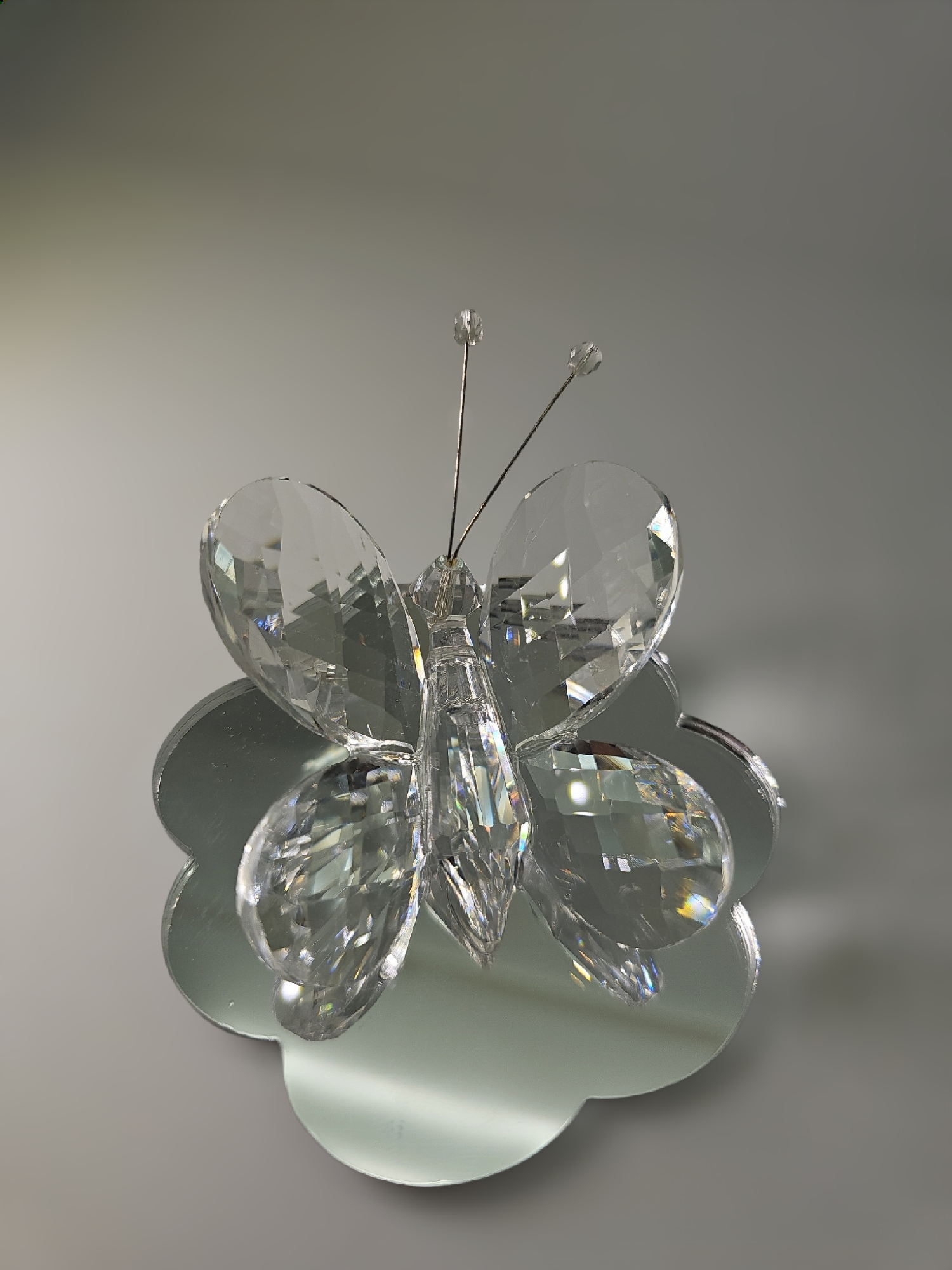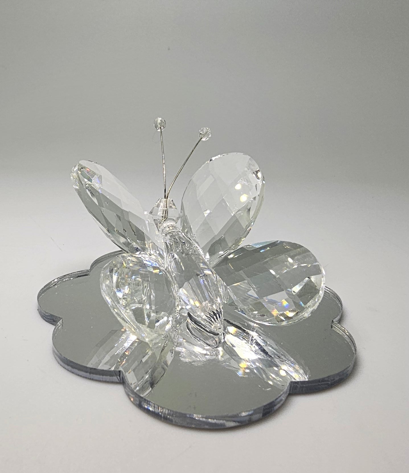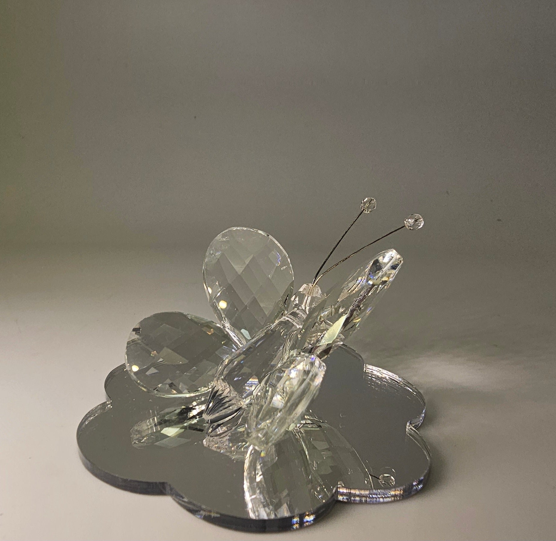 Captura la belleza y la alegría de la primavera con esta vibrante mariposa. Con una silueta moderna y elegante, brilla en cristal transparente. Objeto de decoración La hermosa mariposa se acerca para aterrizar. La mariposa está hecha a mano por los artesanos de Debora Carlucci con cristal Swarovski. Todas las piezas de cristal utilizadas para hacer esta mariposa son cristal de Swarovski facetado. La mariposa, que mide aproximadamente 3" de largo y 3" de ancho, se sienta en un espejo de borde biselado de 3". El artículo viene empaquetado en una caja de regalo. Este pequeño tesoro es un regalo ideal para el Día de la Madre, o una bonita decoración para su propia casa. u oficina... No es un juguete No apto para niños menores de 15 años..