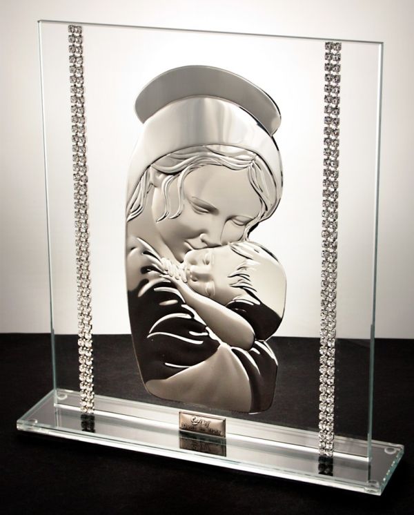 Madonna italiana de plata 925 c. Ícono de niño Cristales de Swarovski #20924