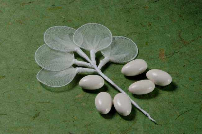 Porta confeti de 5 bolsillos Hojas - Marfil - 25pc/bolsa
