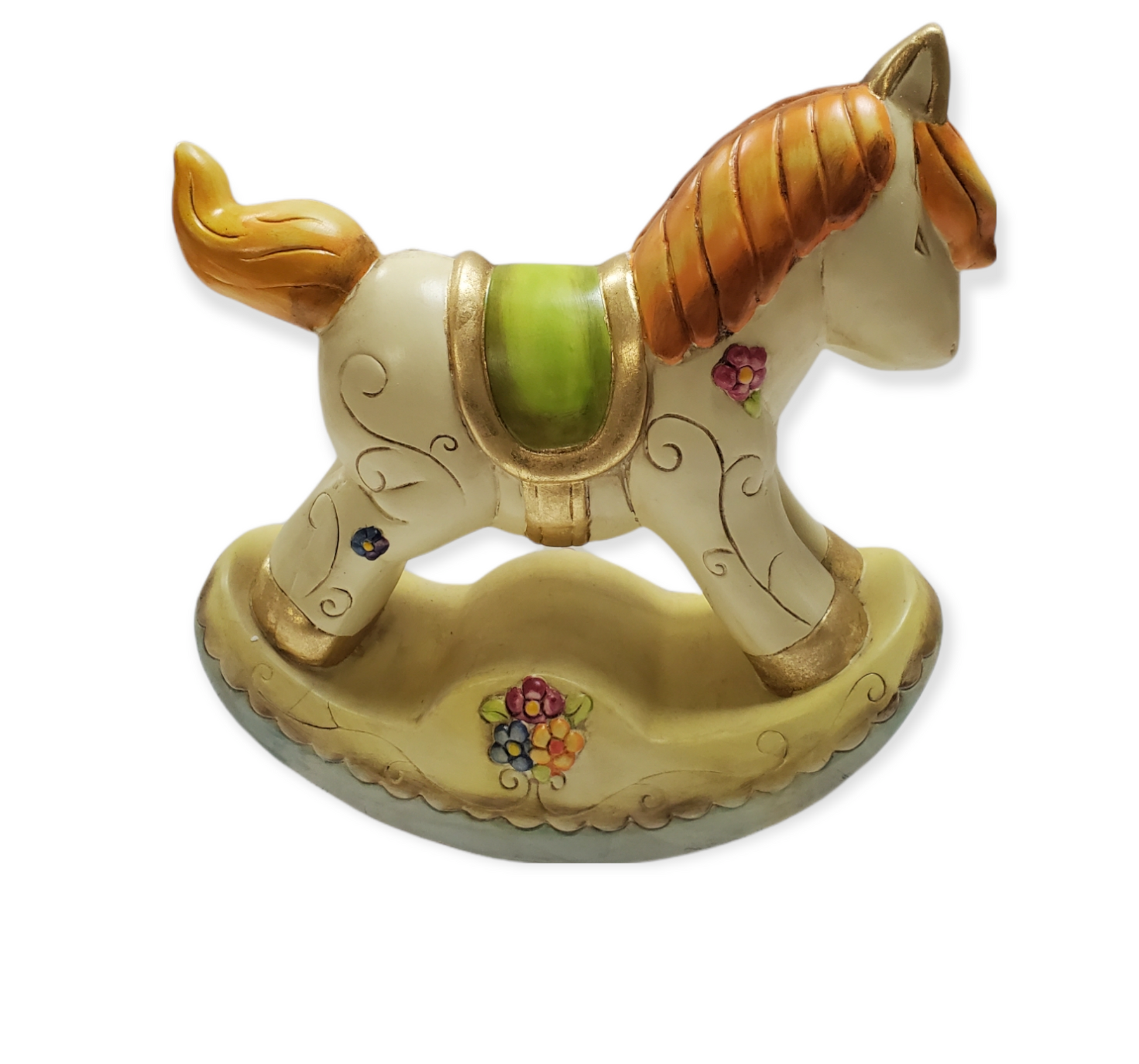 Centro de mesa para baby shower con caballito balancín gigante de porcelana n.º 9D10378
