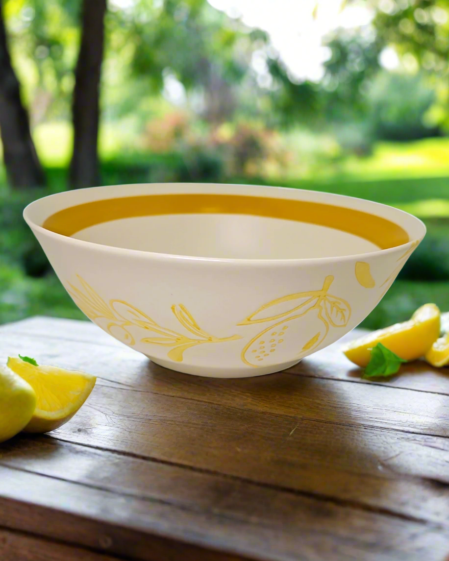 Introduce a touch of Italy to your home with our Cucina Italiana Lemon Design Bowl. This 9" salad bowl features a vibrant lemon design, perfect for serving up salads and pasta dishes. Made from high-quality materials, it's a must-have for any Italian-inspired kitchen. Buon appetito!