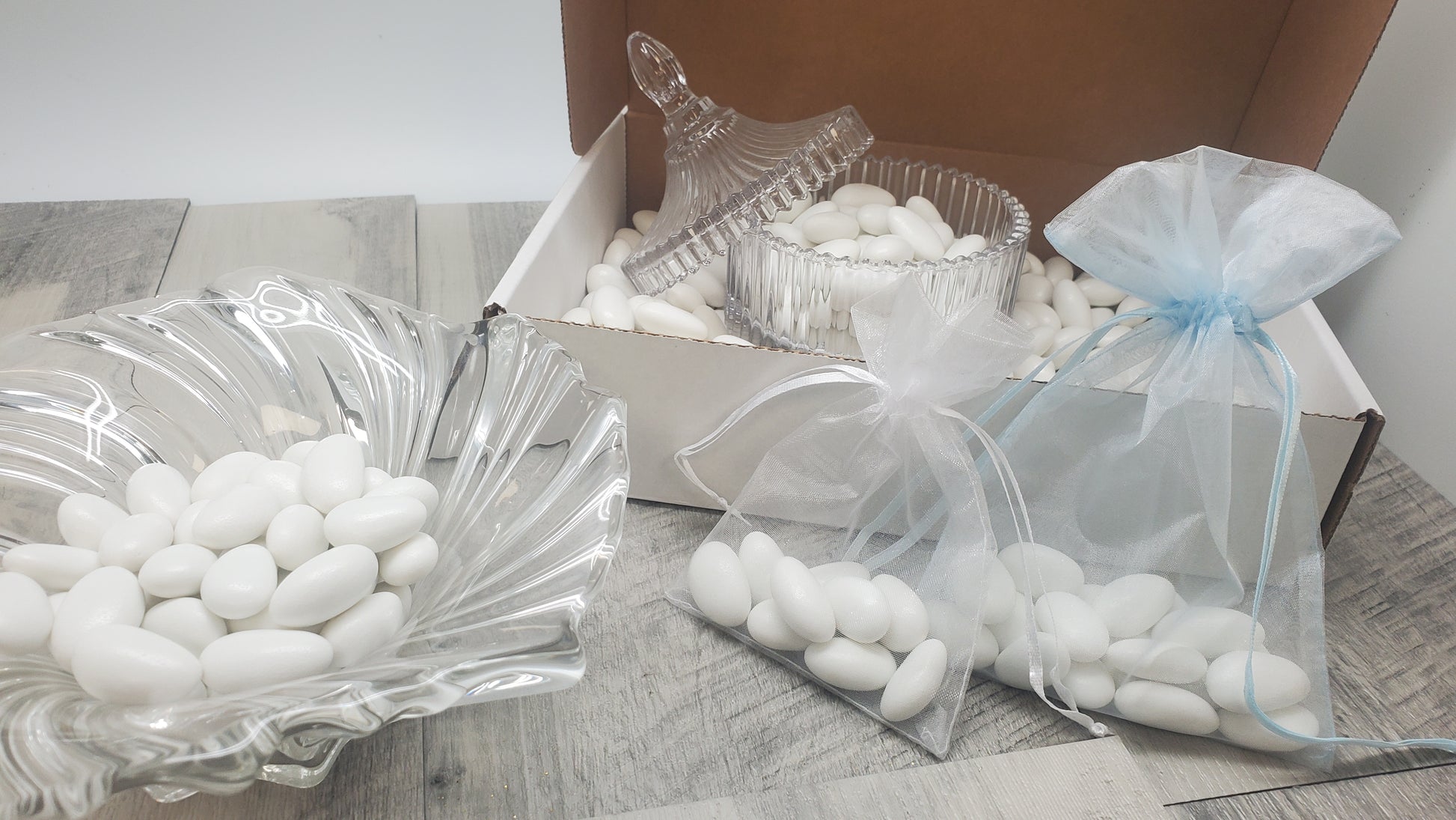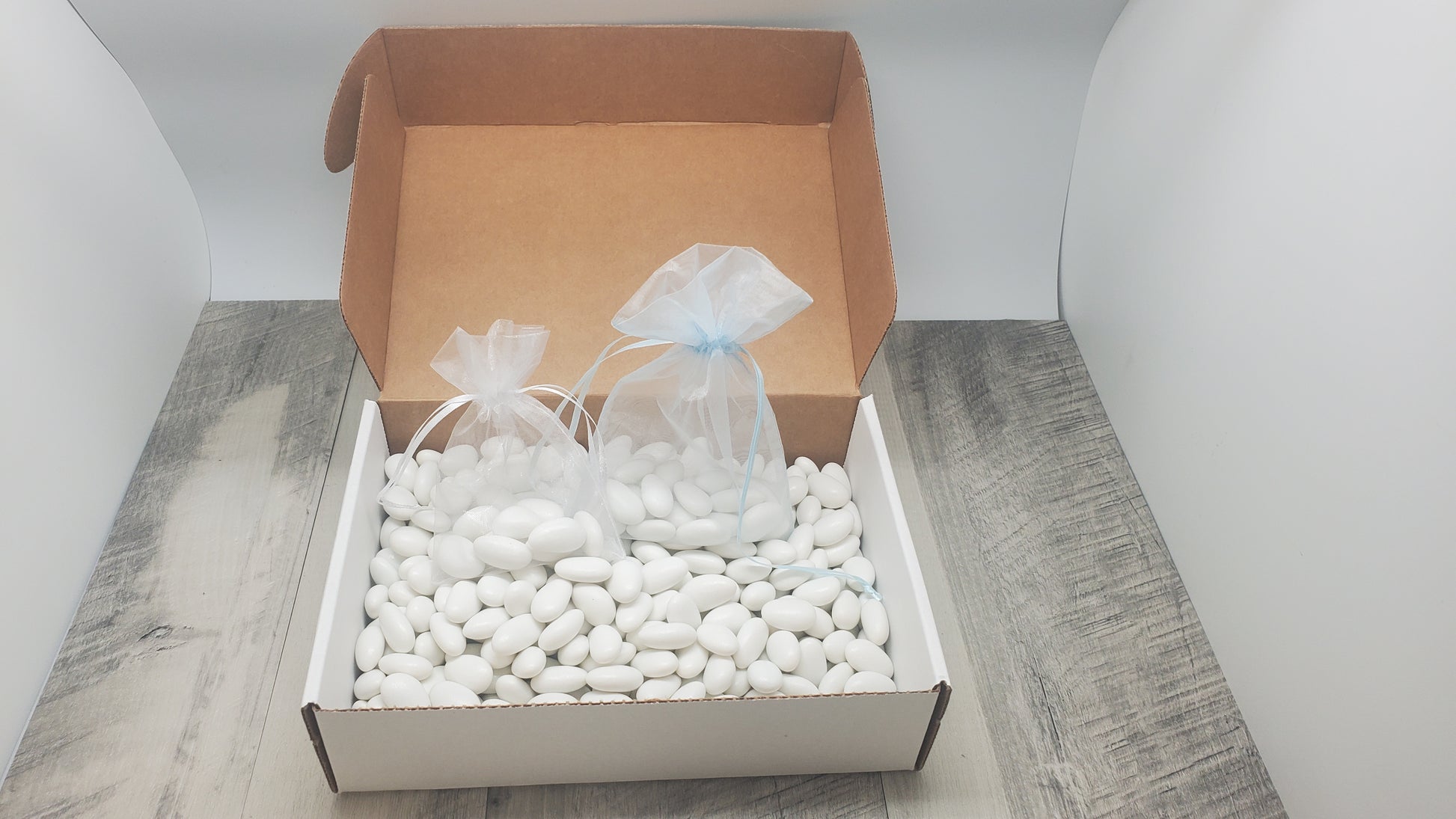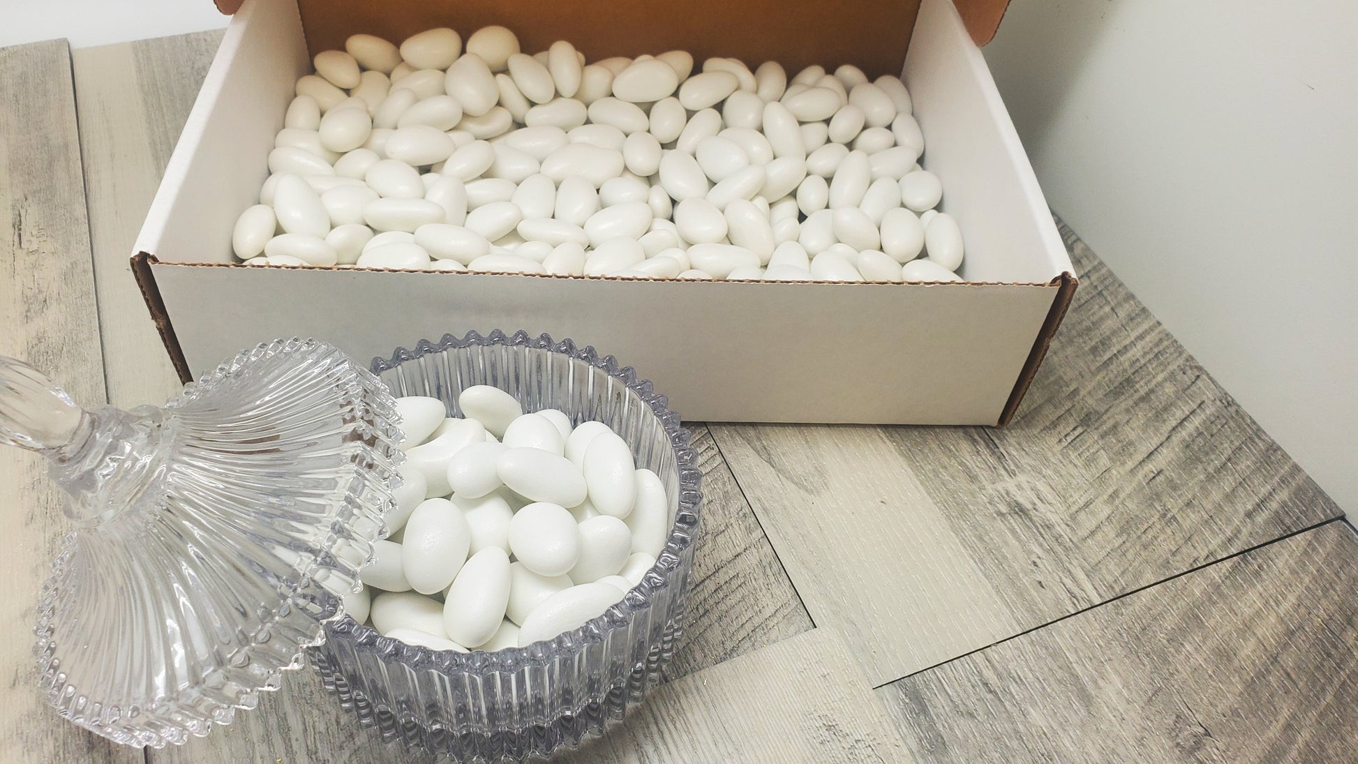Cinco libras por caja. Almendras Jordan blancas extrafinas Puede hacer de 100 a 150 confeti con una caja.