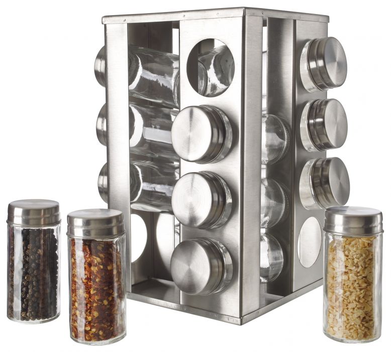 El diseño del estante hace que sea fácil encontrar rápidamente la especia correcta mientras mantiene todo el conjunto convenientemente organizado. Como regalo en una boda o en alguna otra ocasión especial, este conjunto sería a la vez considerado y atractivo.