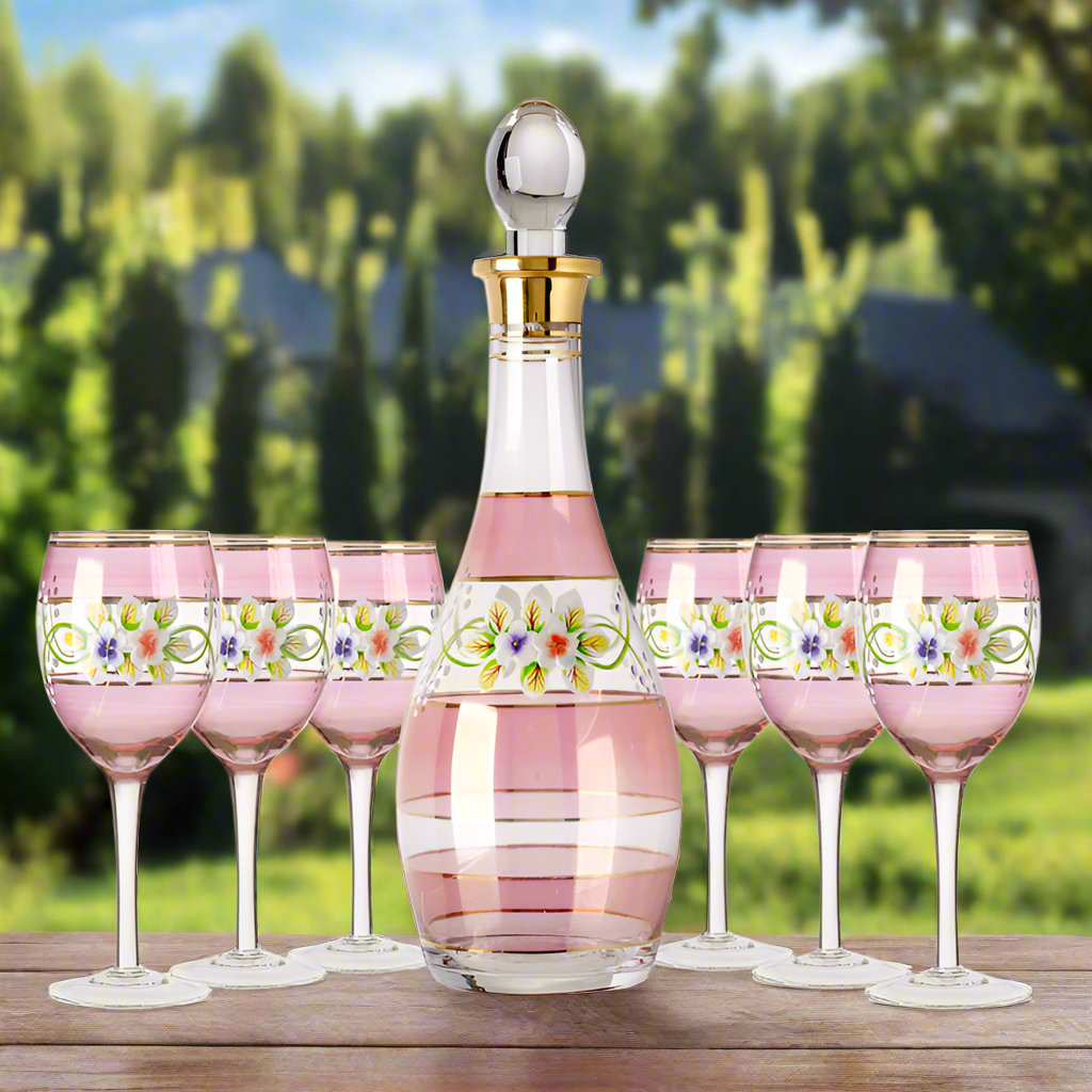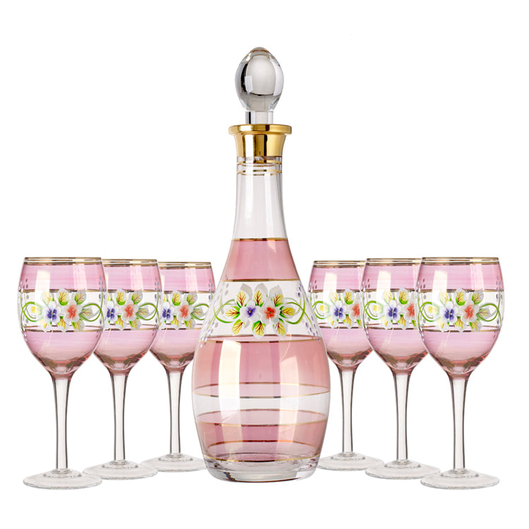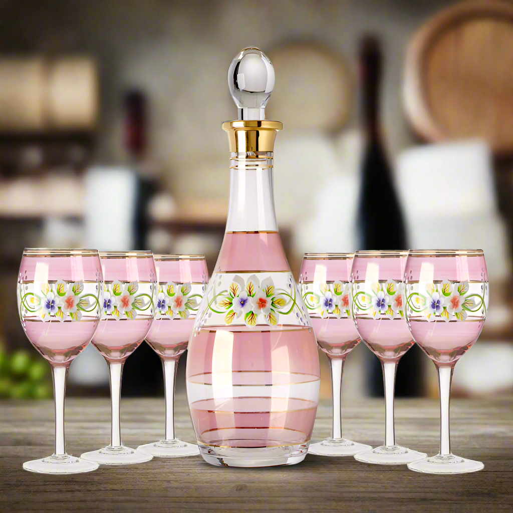 Detalles pintados a mano que hacen única la pieza. Vierta su próxima copa de vino con un toque de estilo a un precio muy asequible.