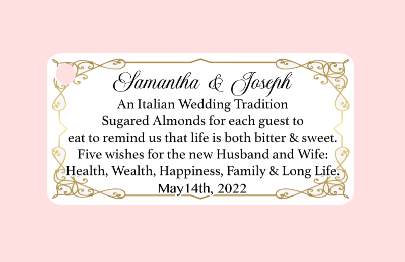 Adjuntar una etiqueta personalizada, (Bigliettini) resaltará su atención a los detalles y traerá un encanto personalizado a su boda, su recepción y sus artículos de ceremonia. Transforme artículos ordinarios en recuerdos extraordinarios y obsequios bien pensados simplemente colocando una etiqueta con una bonita cinta, cordel, filamento dorado o rafia. Vea lo fácil que puede ser agregar un toque personalizado cuando crea una etiqueta de recuerdo de boda personalizada. Compre nuestra increíble selección de etiquetas de recuerdo de boda, comuniones, despedidas de soltera o simplemente un simple agradecimiento, y cree algo espléndido con la ayuda de nuestra boda. boutique e ideas de etiquetas a favor.