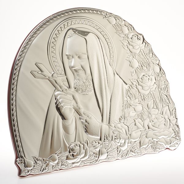 Placca religiosa da parete o da tavolo in argento 925 italiano Padre Pio #1975