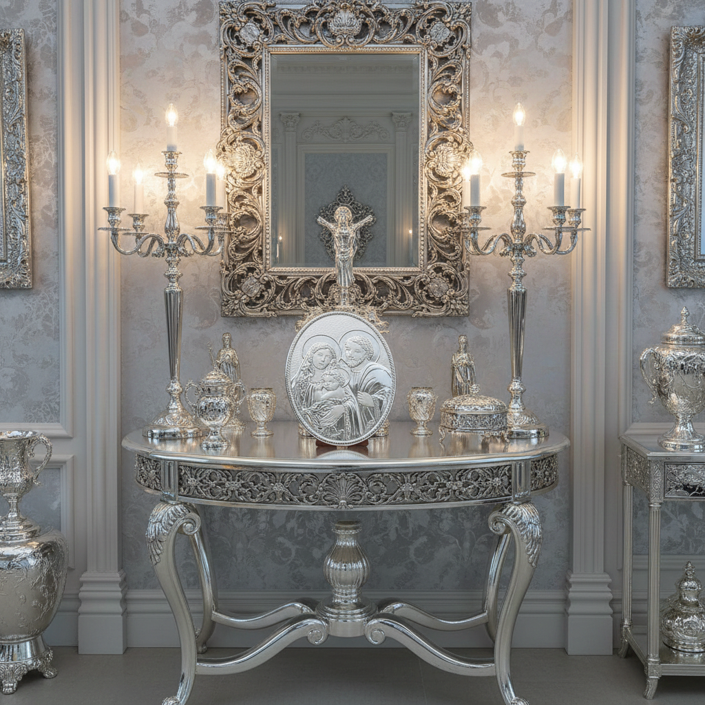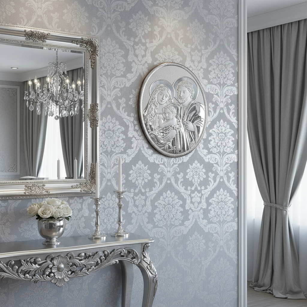 Festeggia la gioia delle festività natalizie con questa placca ovale italiana in argento 925 della Sacra Famiglia su retro in legno di ciliegio con la sacra famiglia di Gesù, Maria e Giuseppe. Questa placca ovale Sima Argenti presenta un design ovale unico che racchiude una scena nella stalla di Betlemme. La placca dell'icona ovale della Sacra Famiglia è realizzata in argento 925 e mostra elegantemente l'orgoglio di Giuseppe per il suo nuovo figlio mentre Maria adora Gesù appena nato. Regala questa targa come regalo singolo, in un set numerato, o acquistane alcune per la tua casa o luogo di culto. Può essere regalato come regalo per le vacanze o per la baby shower o utilizzato come decorazione natalizia e per tutto l'anno a seconda delle preferenze. Viene fornito con un certificato di origine e autenticità.