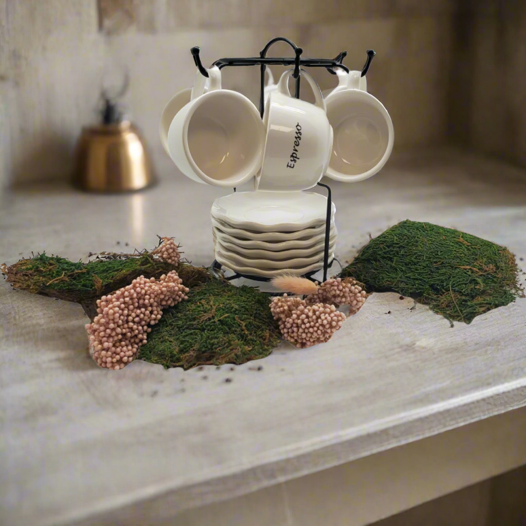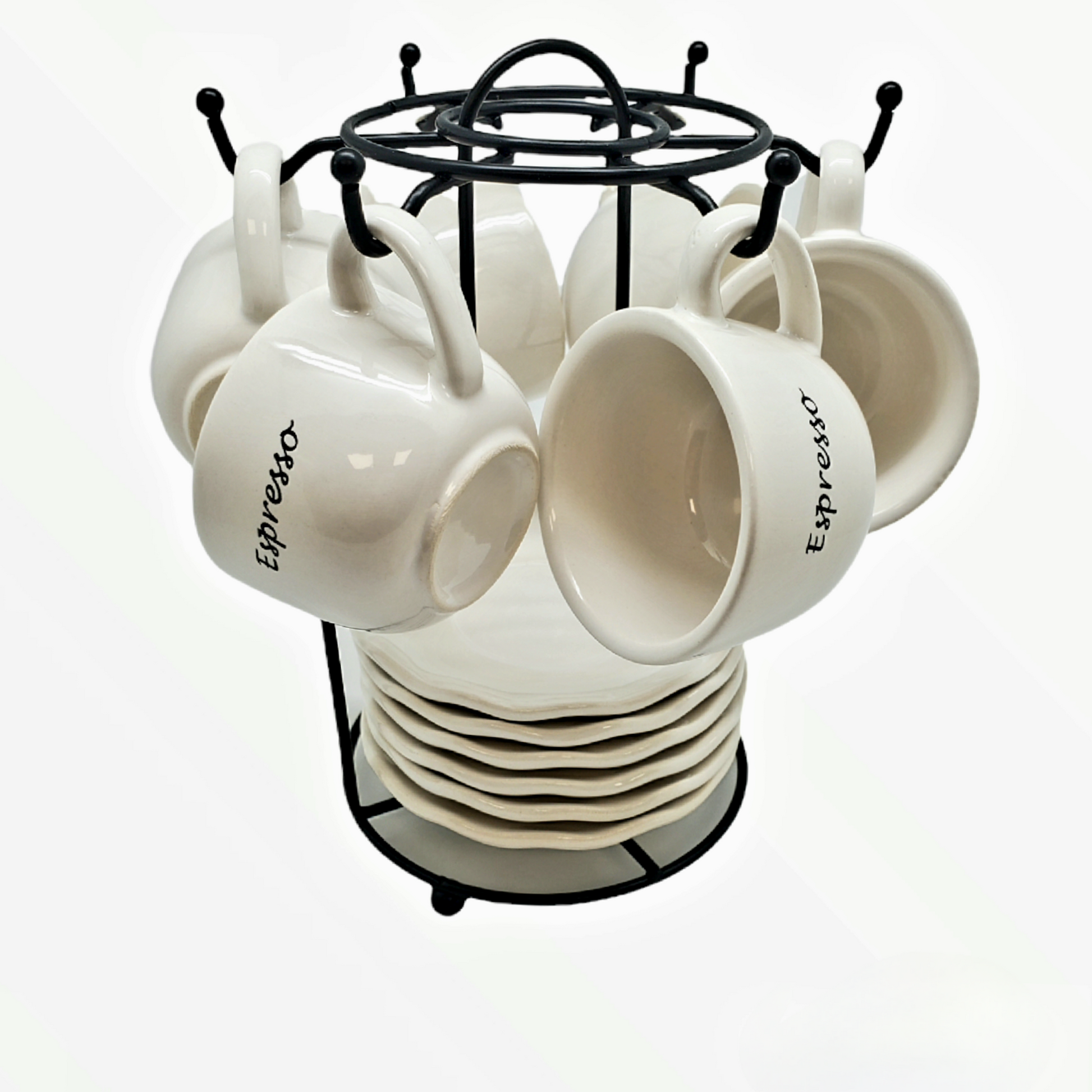 Cucina Italiana Set da caffè espresso in ceramica da 12 pezzi con supporto #1422/W