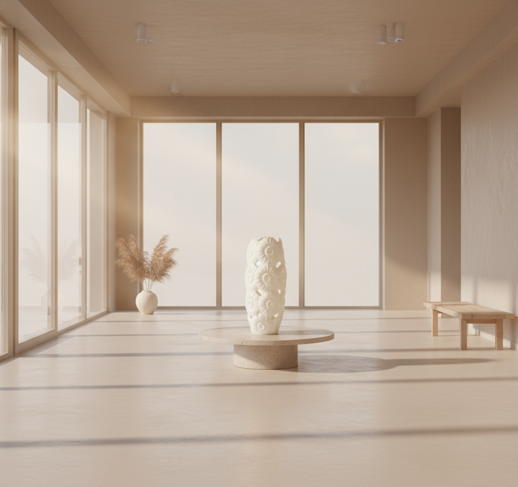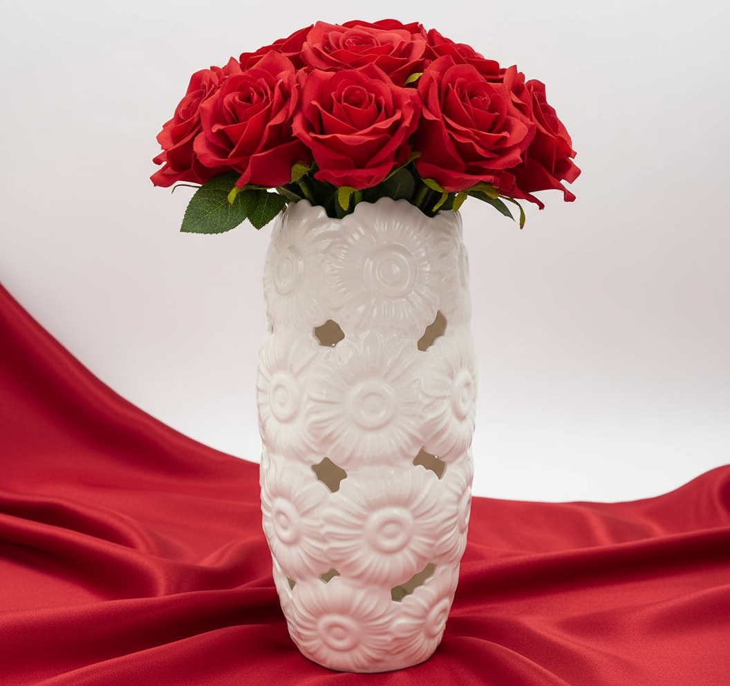 Vaso centrotavola in porcellana avorio 15' con decoro margherita in rilievo #DC2652