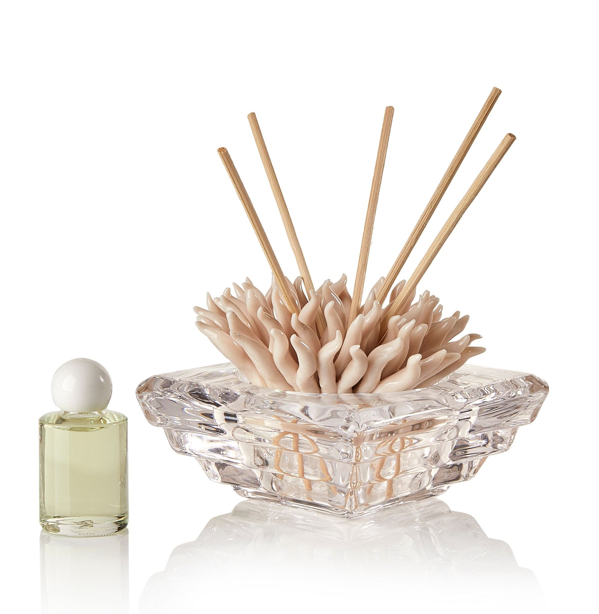 Diffusore per aromaterapia con base in cristallo al piombo 24% italiano, fragranza inclusa con parte superiore in corallo di porcellana,