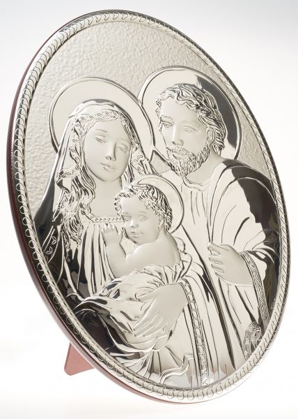 Sacra Famiglia Italiana 925 Argento Argento Targa Religiosa Ovale 13 x 18 #19971997