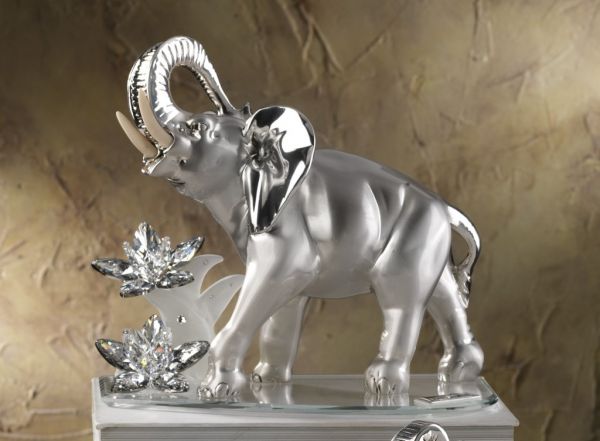 Figurina di elefante in argento 925 italiano w. Swarovski su base in vetro #20111