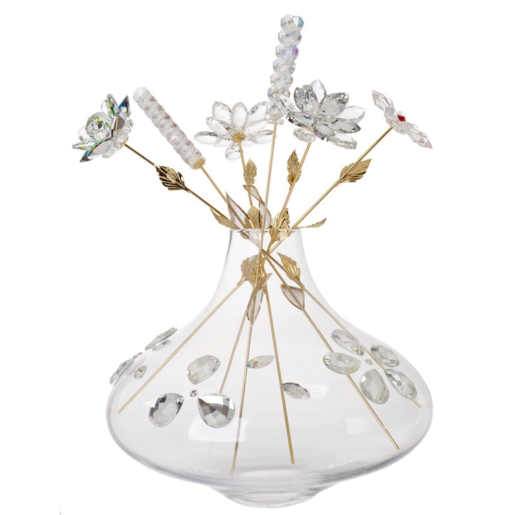 Vaso e sei steli di fiori color oro l. cristallo 33752-ORO