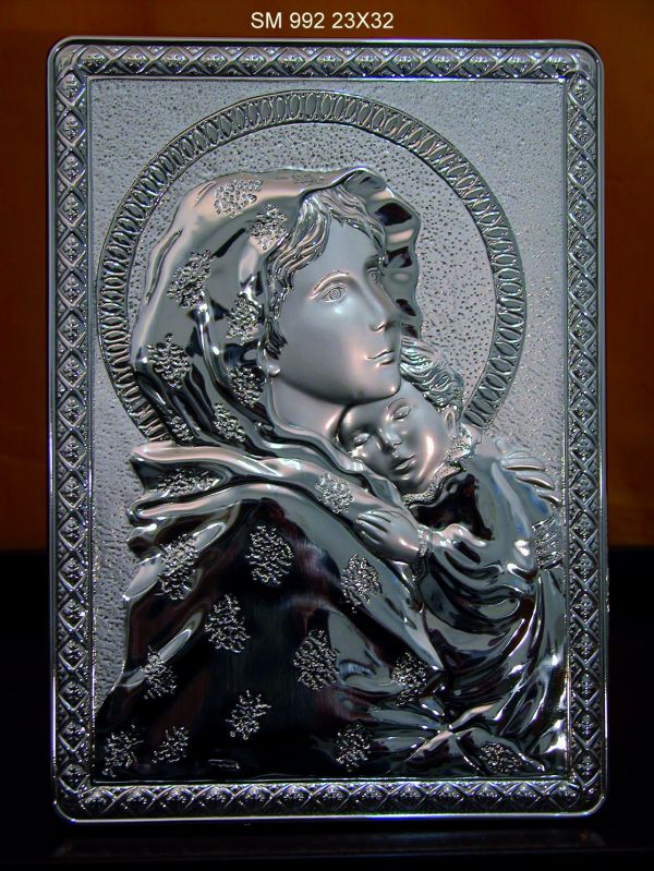 Madre con bambino Argento 925 italiano Icona targa argento #992