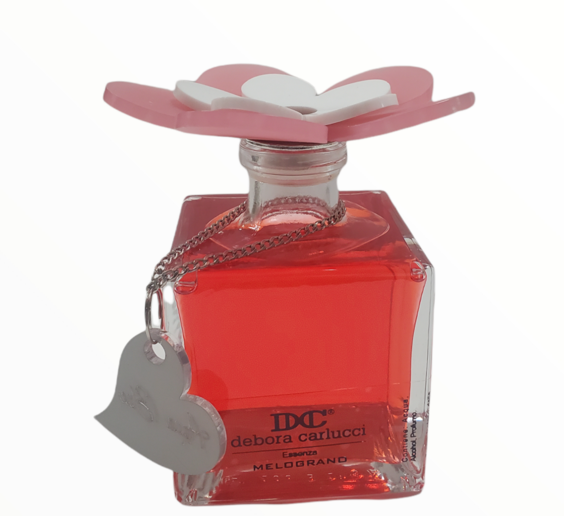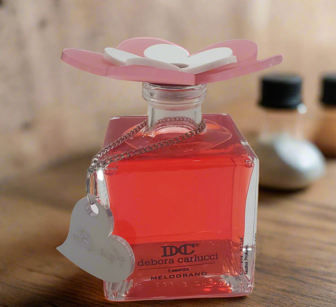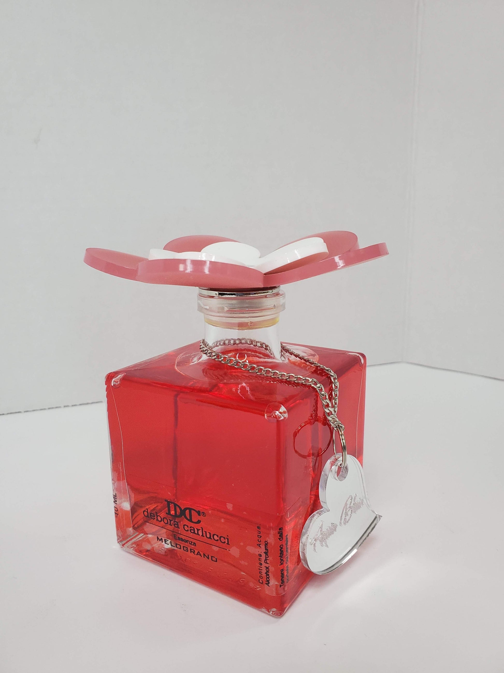 Debora Carlucci Collezione Renoir Diffusore quadrato grande rosso Bottiglia di profumo di melograno melograno con parte superiore a fiori vivaci 7 oz. #DC5807