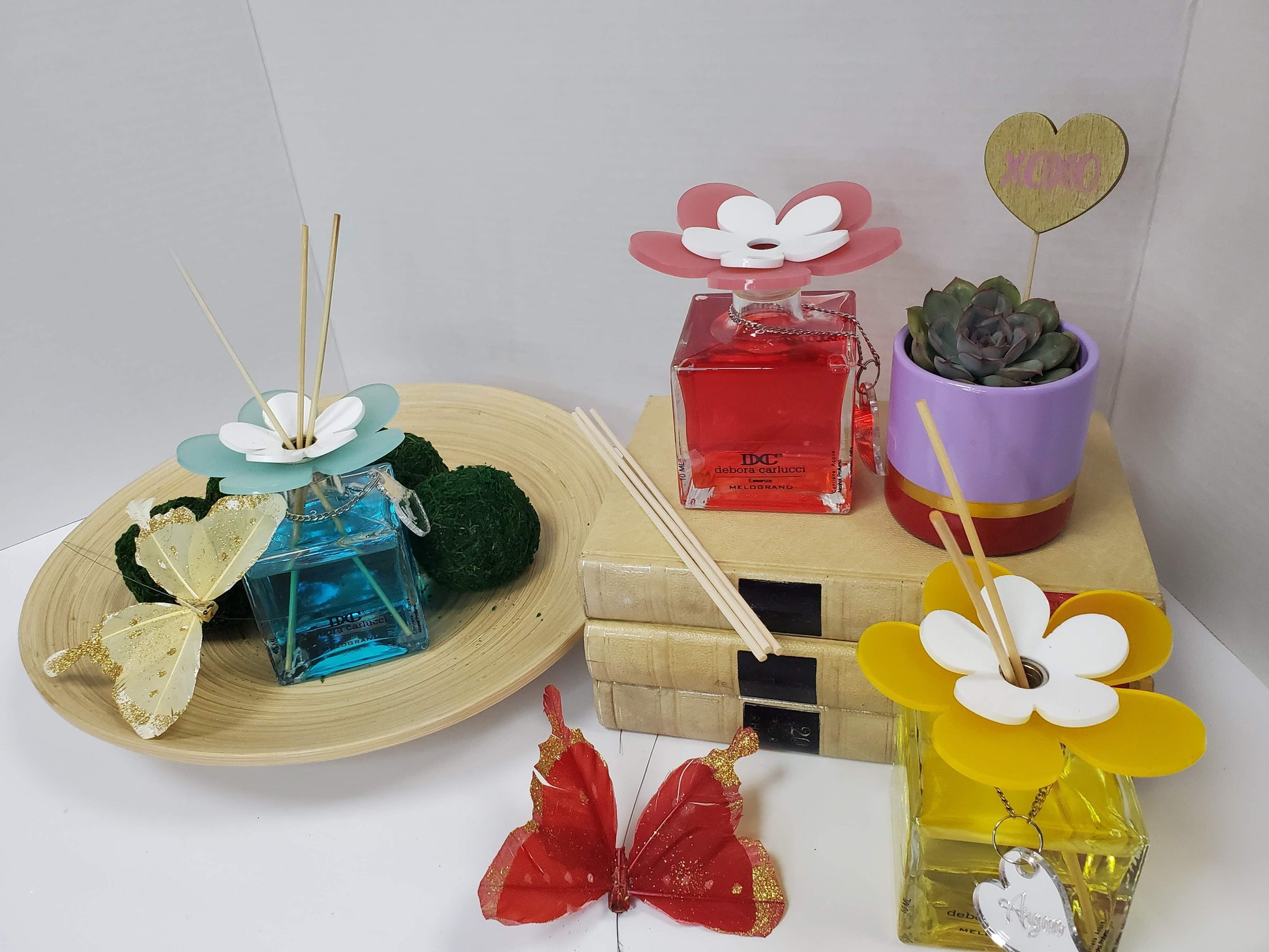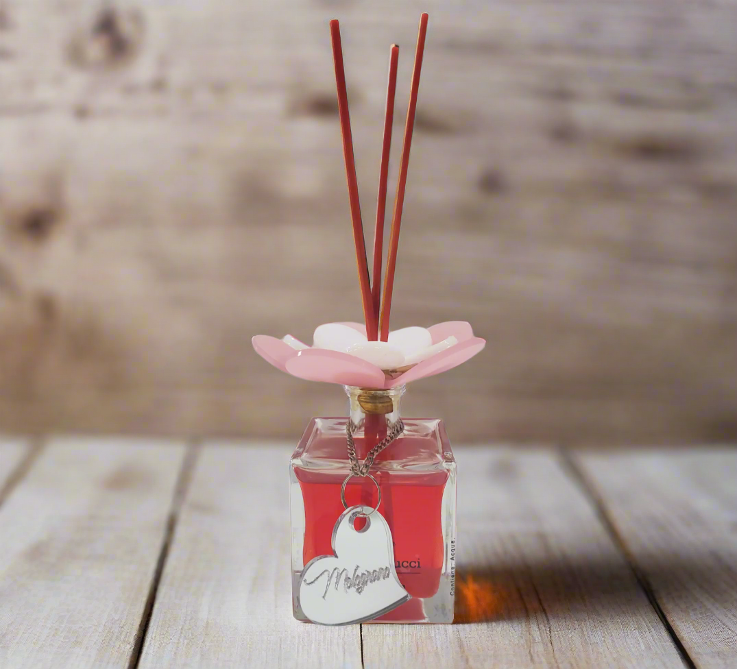 Debora Carlucci Flacone diffusore a bastoncini quadrati con profumo di melograno melograno e parte superiore vibrante di fiori 3,5 oz. #DC5806