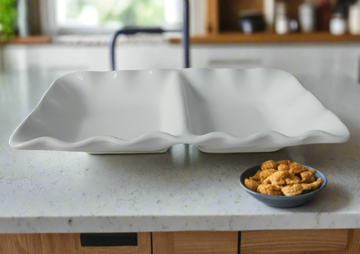 Piatto da portata per antipasti in ceramica a 2 sezioni Cucina italiana #1191/W
