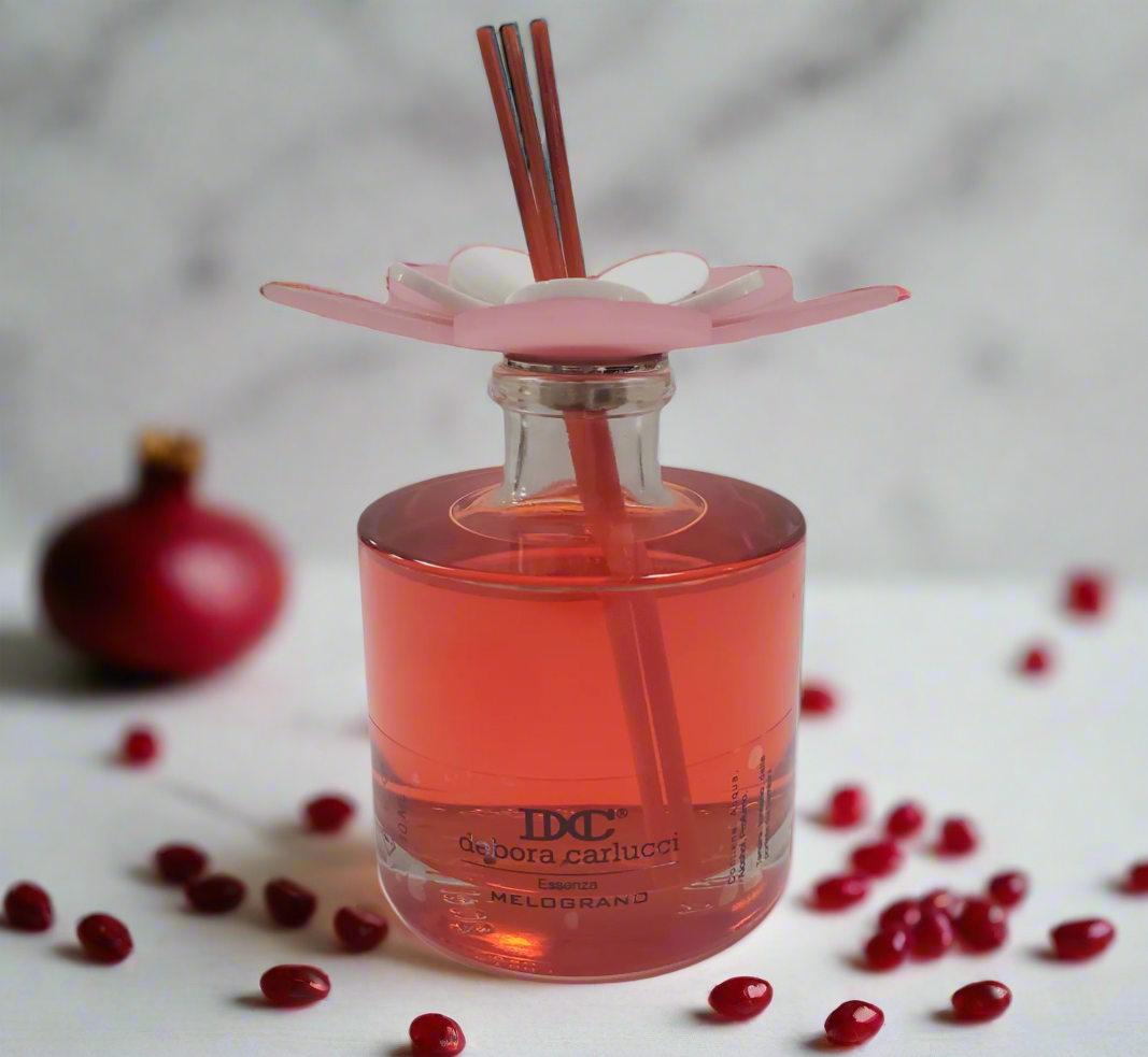 Debora Carlucci Collezione Renoir Diffusore rotondo rosso grande Melograno Melograno Bottiglia di profumo con fiore vibrante Top 7 oz. #DC5809