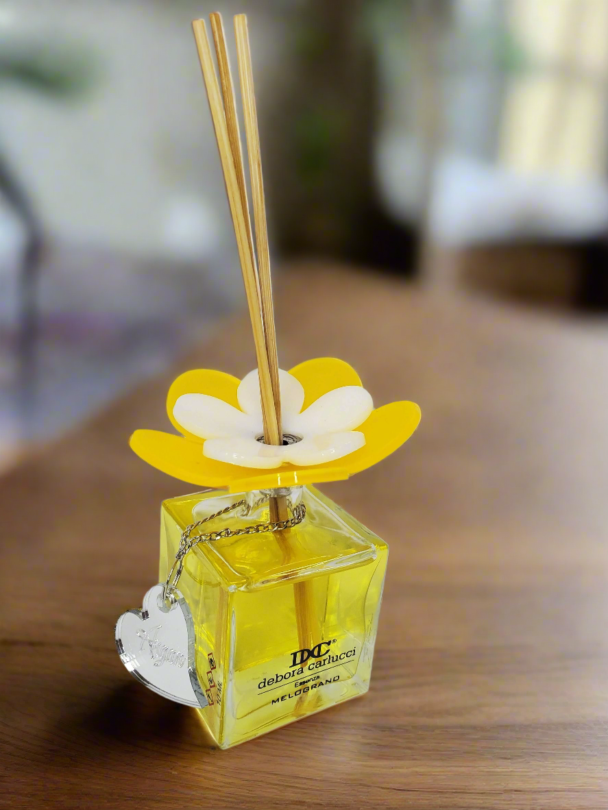 Debora Carlucci Flacone di profumo di argan con diffusore a lamella quadrato con parte superiore a fiori vivaci 3,5 oz. #DC5798
