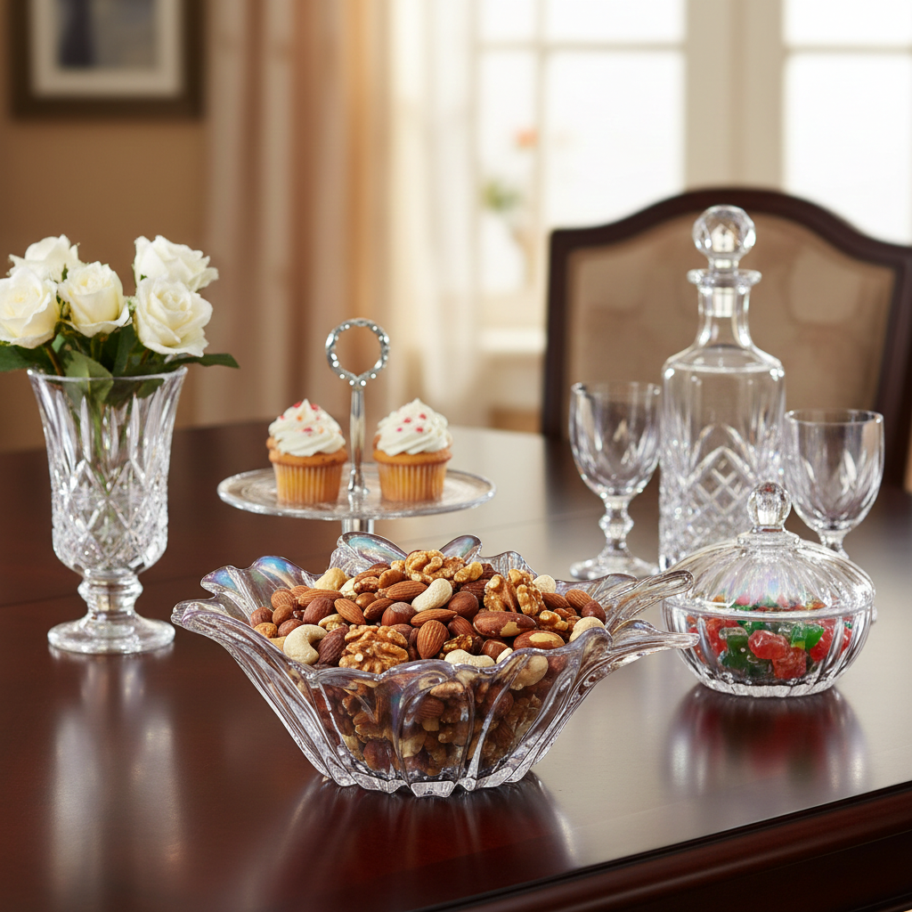 Questo splendido piatto di caramelle italiano farà una grande aggiunta alla tua casa fatta a mano con arte italiana trasparente piatto di caramelle di Murano con colori prismatici Crea l'intero spettro sui colori prismatici (rosso, arancione, giallo, verde, blu, indaco, viola) quando posto alla luce diretta . Perfetto per la tua scrivania al lavoro o il tuo tavolo a casa Riempilo con il tuo dolcetto preferito e snack come preferisci. Bello da vedere.