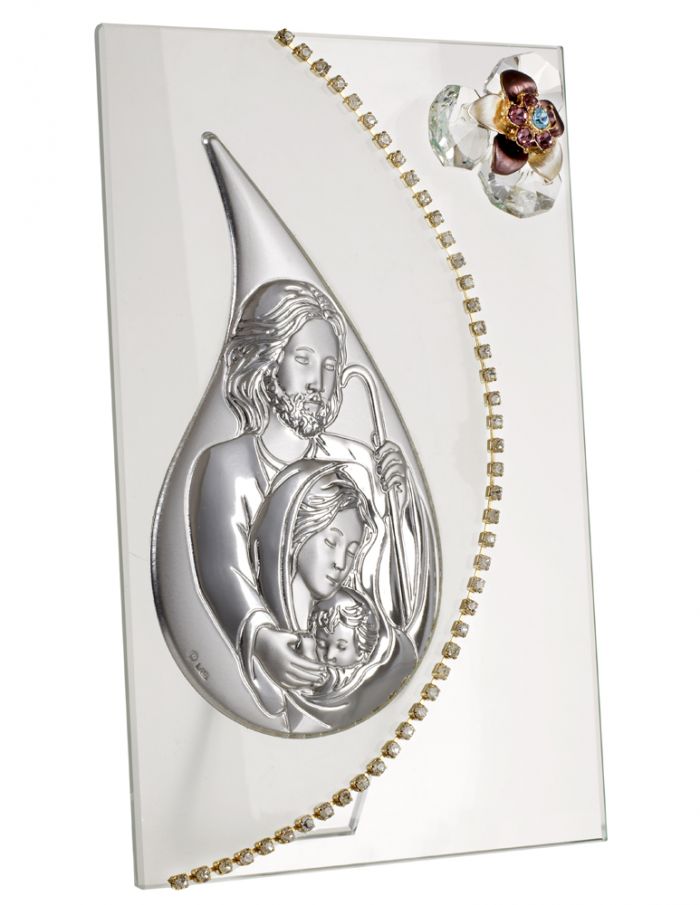 Sacra Famiglia italiana in argento 925 con icona di cristallo Swarovski # K524Y