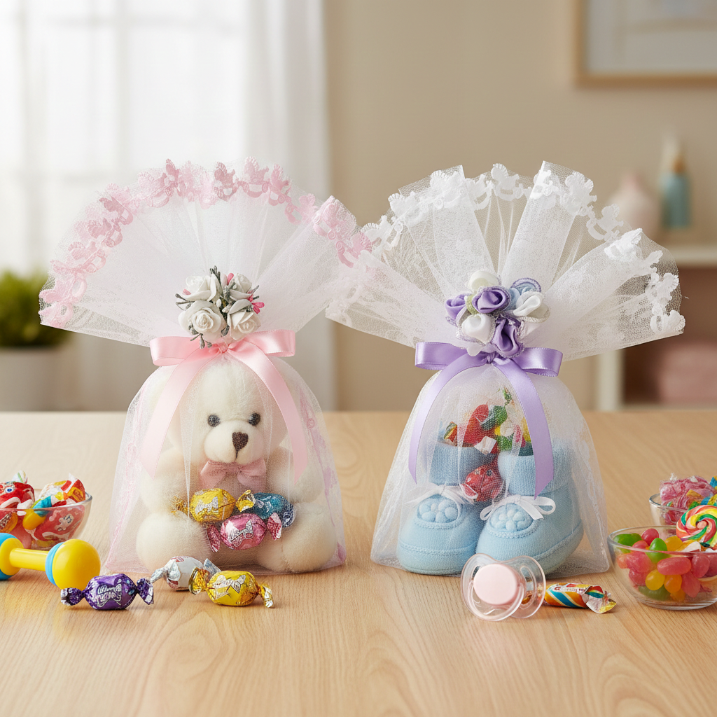 Crafted from delicate organza netting, this Rocking Horse Edge veil adds a refined touch to confetti presentations. Its soft, sheer texture elegantly complements celebratory settings, providing a graceful and sophisticated accent ideal for baby showers, baptisms, parties, or special events.